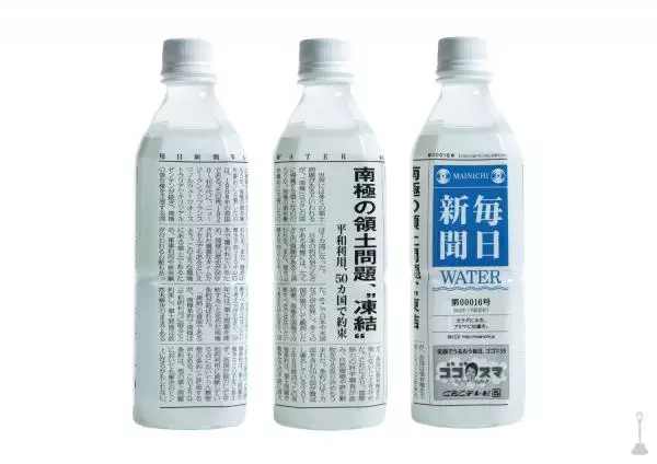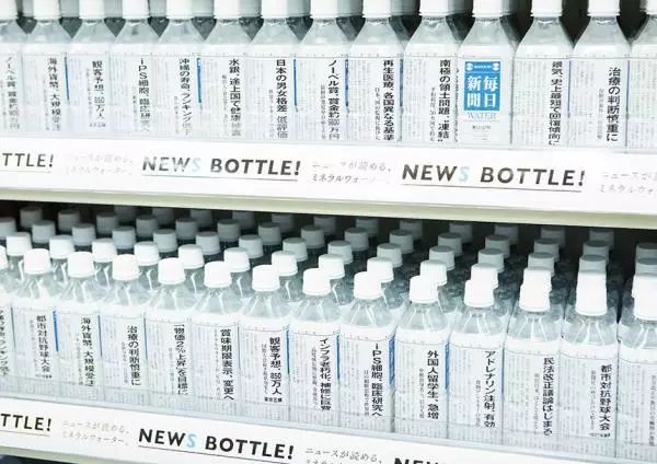 大概在2014年的时候,日本每日新闻发现,每天买报纸的年轻人越来越少,但是每天买瓶装矿泉水的年轻人却越来越多,于是,他们决定,将报纸变成饮料瓶的包装,这样就多了一种渠道,让年轻人看报,而且,他们在活动的执行过程中,也特意降低了瓶装水的定价,使得每一位消费者都可以负担,原来大约6元人民币才能买到的矿泉水,现在只需3块钱。一个意外收获是,用报纸做包装,设计的格调不仅没有降低,而且在货架上的识别度也相当高。